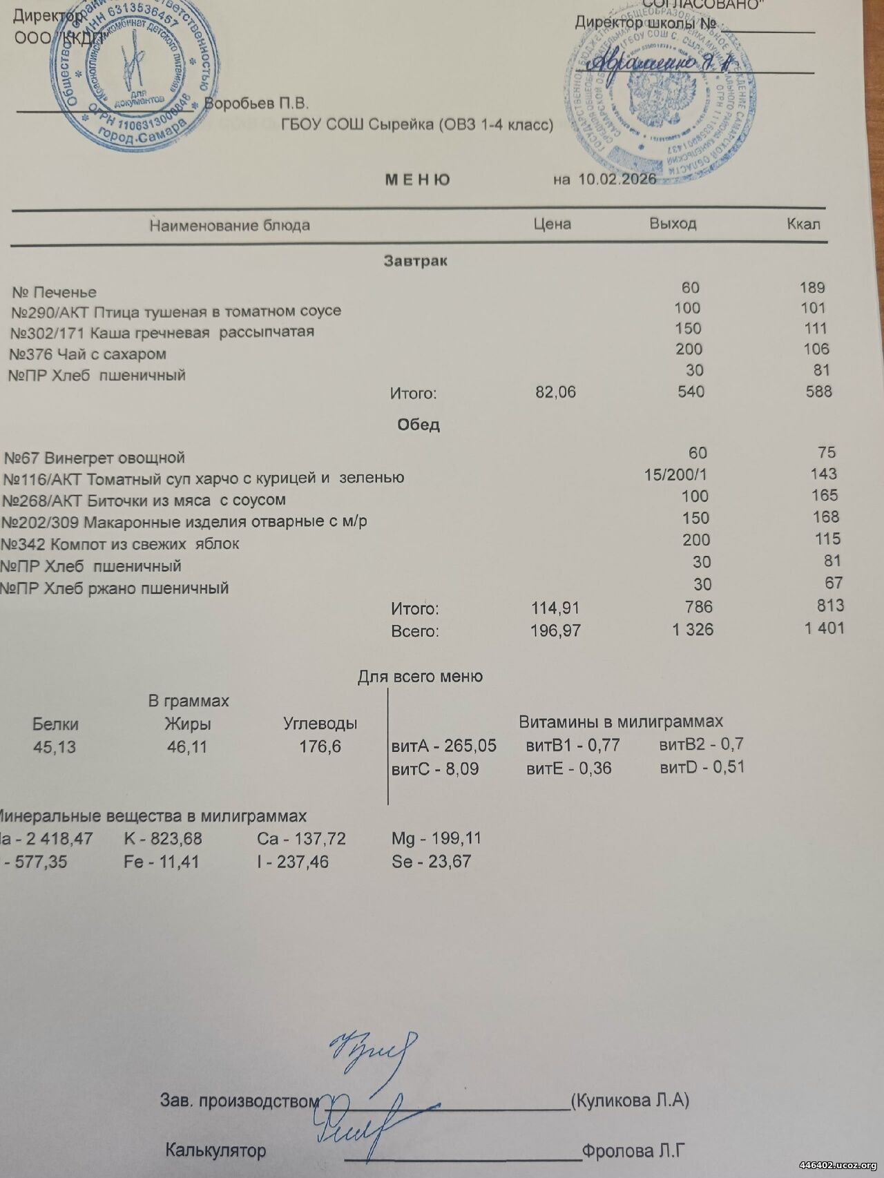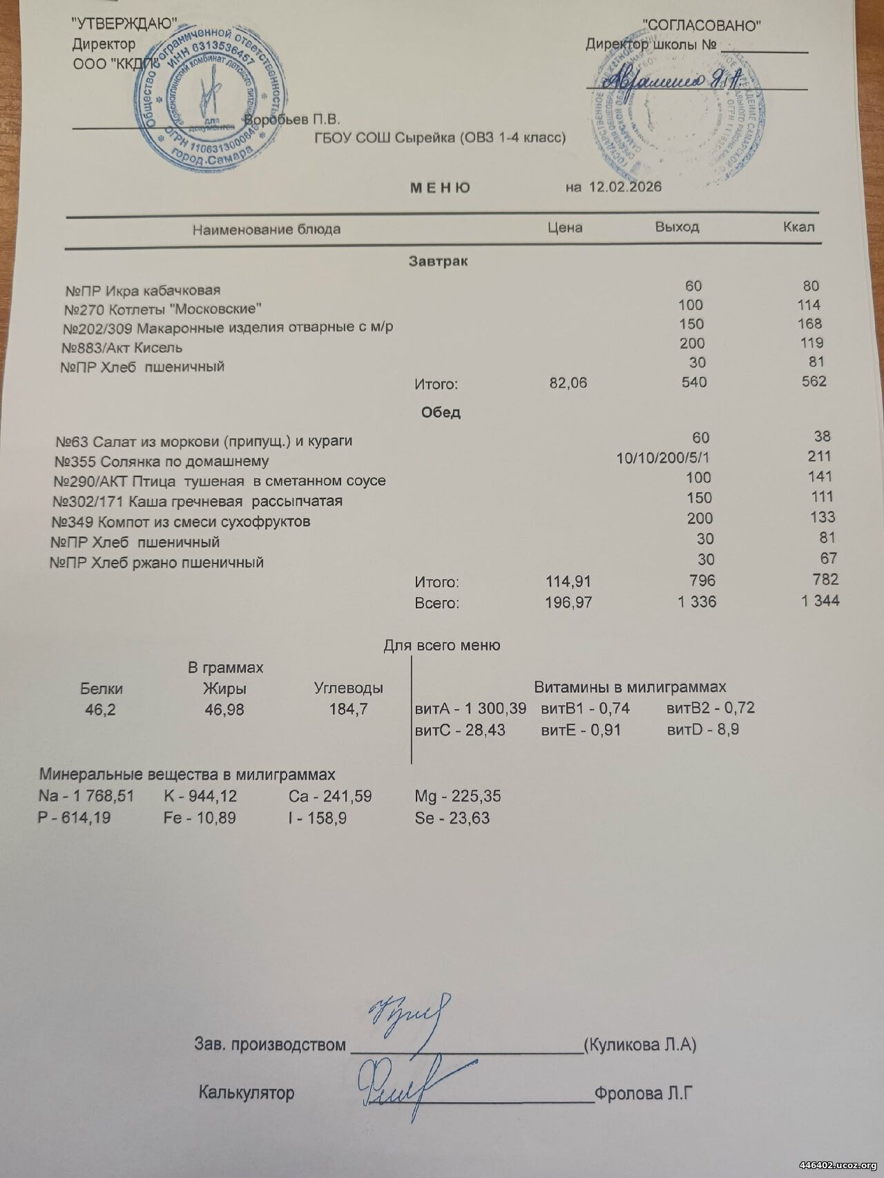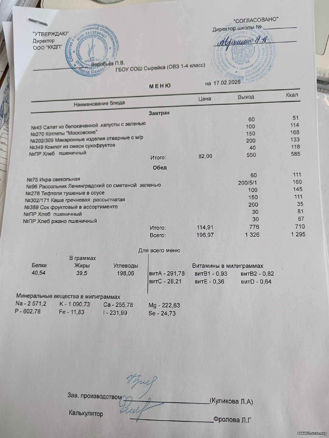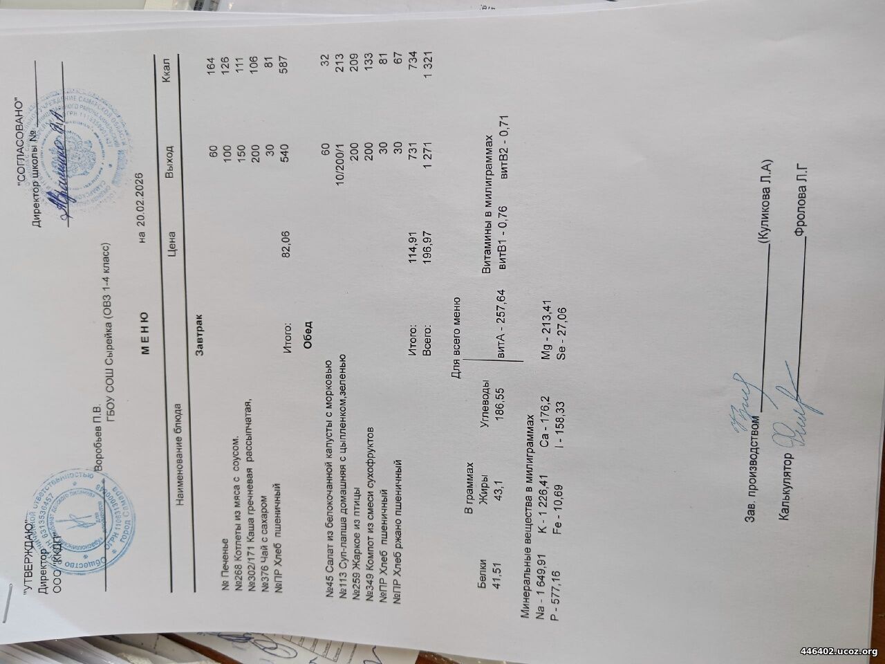 - Двухнедельное меню рациона питания школьников 2025-2026 1-4 классов