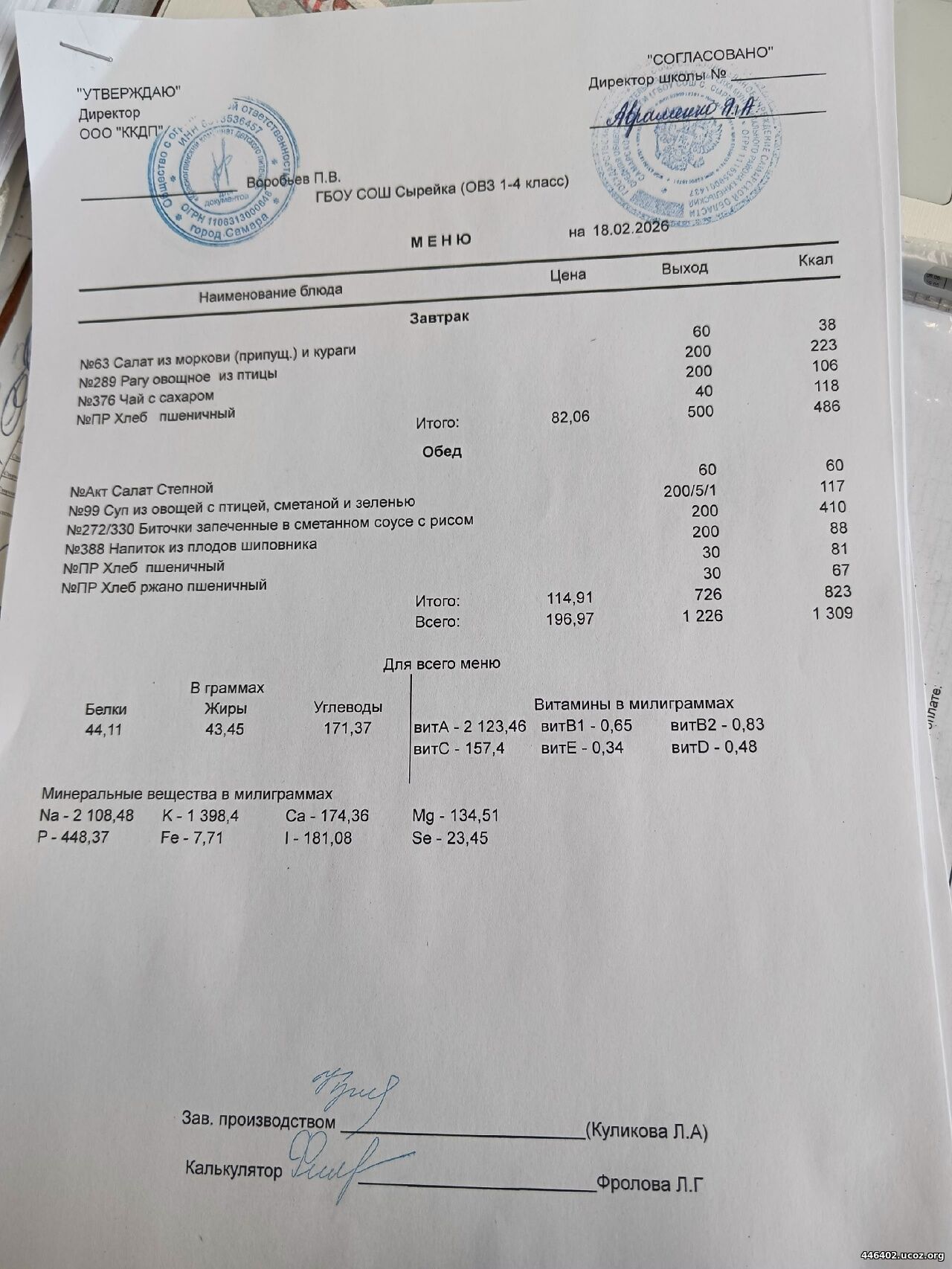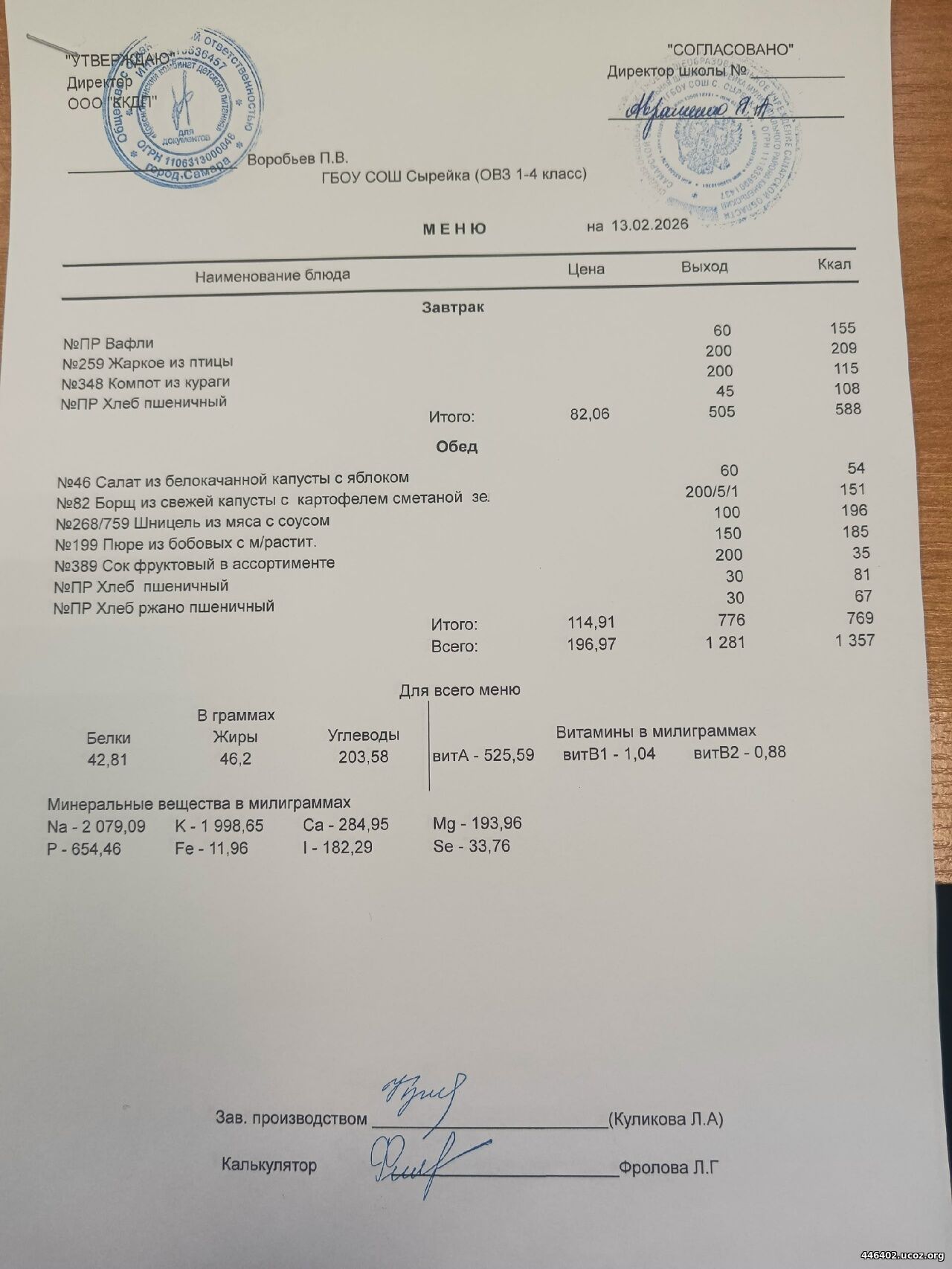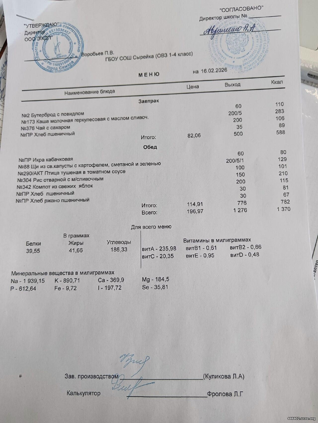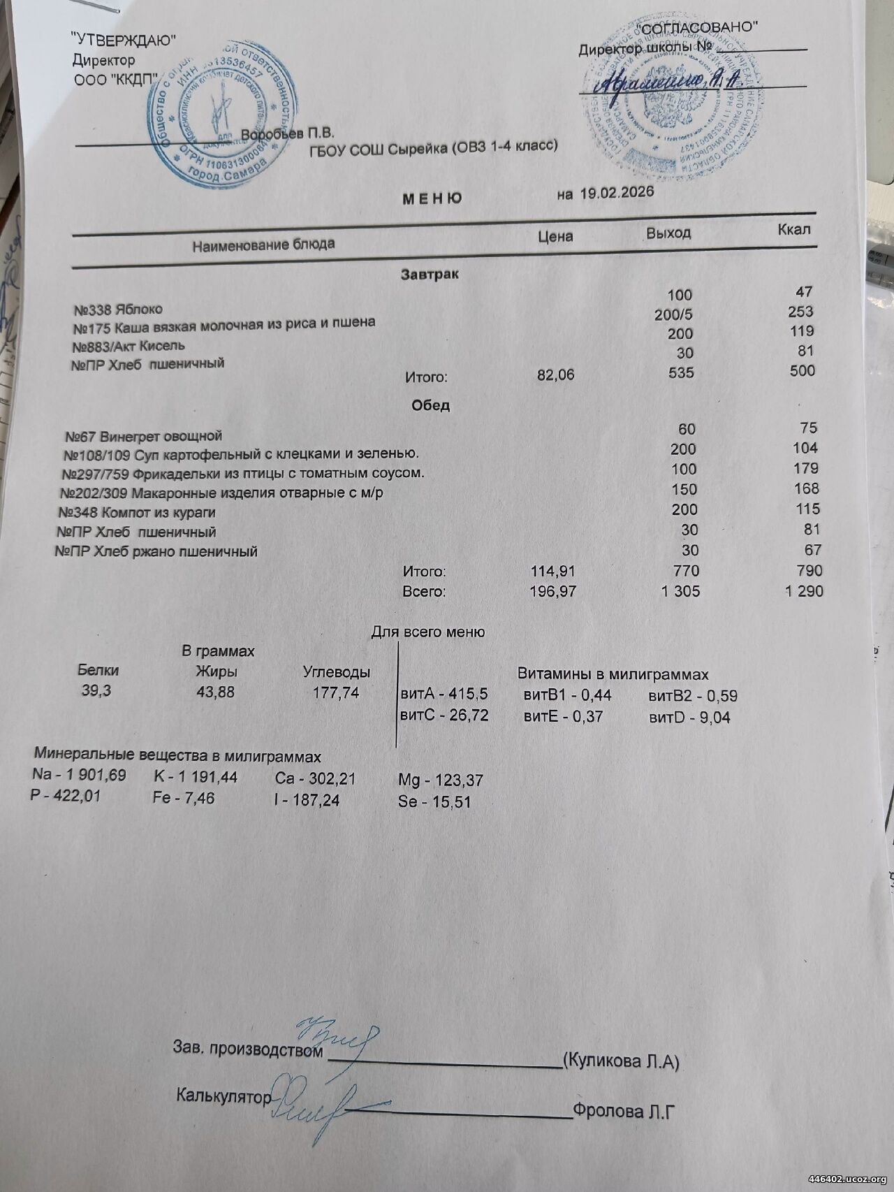 - Двухнедельное меню рациона питания школьников 2025-2026 1-4 классов