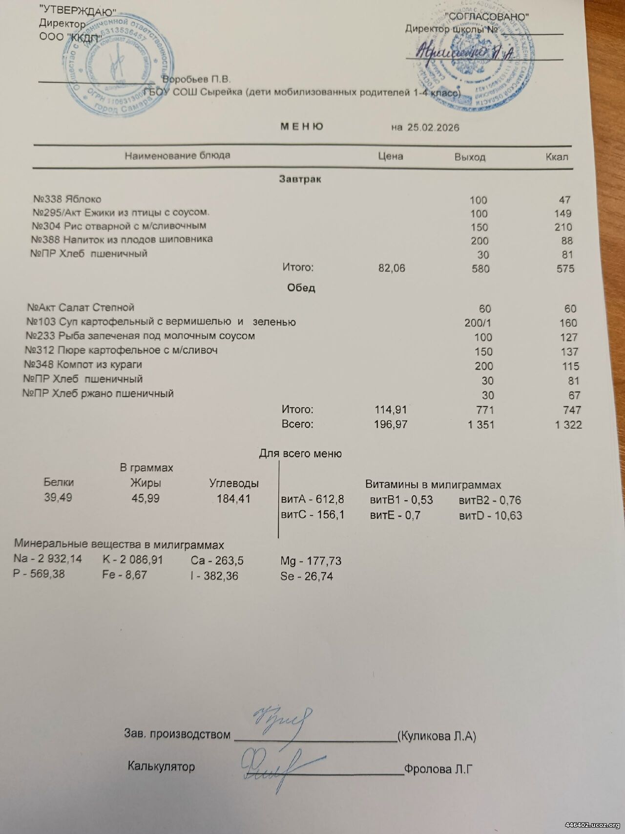 - Двухнедельное меню рациона питания школьников 2025-2026 1-4 классов мобилизованные